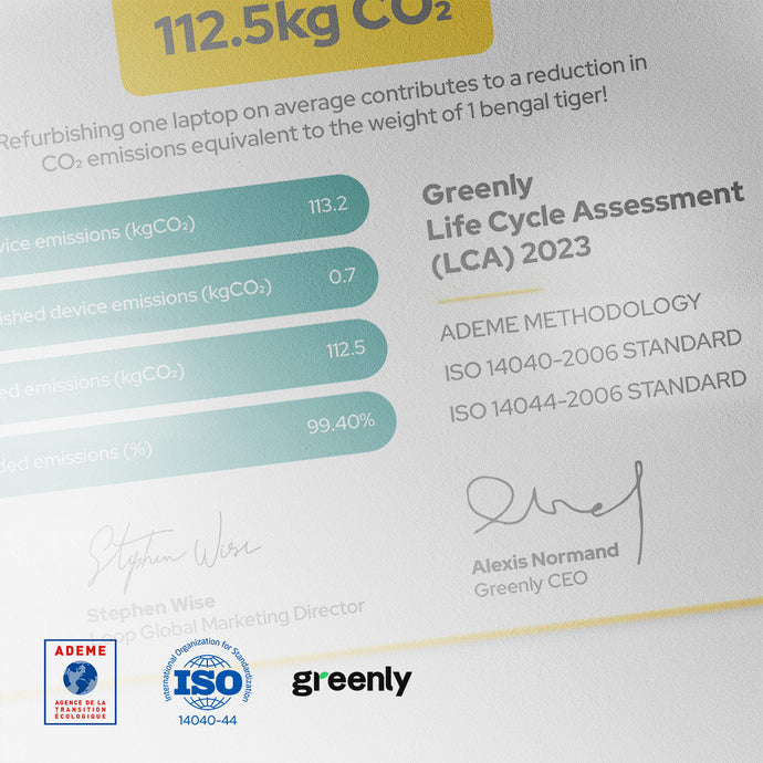 A diferencia de otras empresas de tecnología circular, controlamos todo el ciclo de reacondicionamiento . Además, hemos realizado un estudio exhaustivo para monitorizar nuestras emisiones de CO2 en cada etapa del proceso. Esto significa que somos la única empresa de tecnología circular que conoce el ahorro exacto de CO2 de cada uno de nuestros dispositivos.